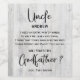 Ask your brother, cousin, or best friend to be your child's godfather with these wine bottle labels. Unique modern wine labels feature calligraphy script, your message on a wooden texture background.