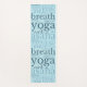 Yoga mat for yoga lovers and yoga studios. The design features yoga terms in shades of blue and green, arranged in a modern subway word art design.