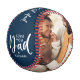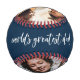 This custom photo baseball design in a rich navy blue features vibrant red stitching, creating a bold and stylish contrast that draws the eye. The standout text “World’s greatest dad” is displayed in a large, elegant script font, adding a heartfelt and celebratory tone perfect for honouring a beloved father. The phrase “love you dad” in a modern, hand-lettered style with space for a child's name, making it a deeply meaningful keepsake. Ideal for Father’s Day, birthdays, Christmas, or special milestones, this design blends sentimental expression with a contemporary, masculine aesthetic, and provides a unique way to showcase cherished memories and messages.