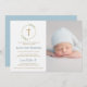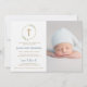 Modern Wreath Gold Cross Baby baptism Photo Blue Invitation
