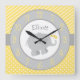 Modern Yellow and Grey Elephant Custom Monogram Square Wall Clock