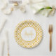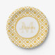 Modern Yellow and White Geometric Monogrammed Name Paper Plate
