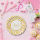 Get your groove on with these modern yellow and white geometric pattern monogram paper plates with trendy tiled circles. Personalise this bold graphic circle design by adding the name and monogrammed initial of the fashionable young woman.