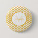 Give your style a modern edge with this graphic yellow and white fish scale scallop pattern button that you can personalize by adding your name and monogram initial to. This trendy geometric shell pattern design is bold, yet stylish.