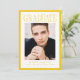 Bright and celebratory, this Modern Yellow Frame Photo Graduation Announcement features a bold yellow border that adds warmth and confident contrast to the clean, structured layout. “Graduate” is displayed in refined serif lettering at the top, drawing the eye above the graduate’s vertical photo centered within the design. The graduate’s name, school, and graduation year appear below in a crisp, balanced arrangement that keeps the focus on their accomplishment. On the back, a horizontal photo is paired with space for personalized text, making it perfect for sharing graduation party details, future plans, or a heartfelt thank you message. Designed for both high school and college graduates, this modern photo graduation card offers a fresh yet timeless way to honor this important milestone.