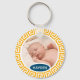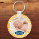 Modern personalised custom photo keychain with trendy yellow geometric frame.
