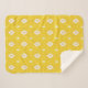 This cosy sherpa blanket features a yellow geometric pattern with white diamonds and stars.