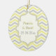 Modern yellow, grey, ivory chevron pattern custom ornament design. There is a frame with your names in the centre. Add your text, monogram or initials. A stylish zig zag design using the classic stripes with contemporary yet vintage look in a sense that can be personalised. You can change background and text colour choosing from over 200 colours from Zazzle colour chart. Elegant, classy and playful design to protect your electronic devices.