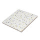 This ceramic tile features a faux terrazzo pattern with tiny specks in yellow and grey shades on a white background. Customise it with your own colours by clicking on Edit design.