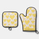 Modern Yellow Heart Pattern Personalised Oven Mitt & Pot Holder Set