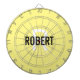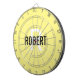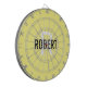 Modern yellow dart board with a black name and white monogram. Personalise with name and initial.