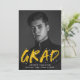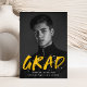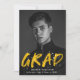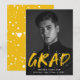 Announce your graduation with our Modern Paint Splatter photo graduation announcements. The design features the graduate's vertical photo with "Grad" in yellow lettering with white paint splatters. Personalise the front of the creative graduation announcements by adding the graduate's name, school name, and graduation year. The back of the announcement features a yellow background with white paint splatters. The design is perfect to use for both high school and college graduates.