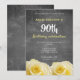 Modern Yellow Rose Chalkboard 90th Birthday Party Invitation
