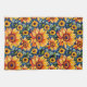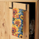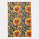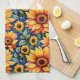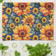 This image depicts a pattern featuring bright yellow sunflowers with green leaves against a dark blue background. The sunflowers are rendered in a detailed and vibrant style, creating a visually striking contrast with the dark backdrop.