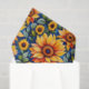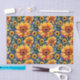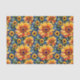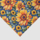This image depicts a pattern featuring bright yellow sunflowers with green leaves against a dark blue background. The sunflowers are rendered in a detailed and vibrant style, creating a visually striking contrast with the dark backdrop.