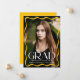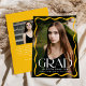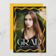 Celebrate your high school or college graduate with this vibrant graduation announcement, featuring a full-bleed vertical photo framed by a stylish yellow-orange wavy border. The bold white "Grad" lettering makes a statement, while the graduate’s name, school, and class year add a personal touch. The back showcases a horizontal photo with space for a custom message, making it the perfect way to share this special milestone with family and friends.