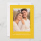 Introducing our enchanting Modern Yellow Wavy Frame photo wedding invitation, where boho meets retro in a harmonious celebration of love! With yellow lettering dancing across the white invitation, adorned with a wavy frame reminiscent of vintage charm, this whimsical design sets the perfect tone for your special day. Personalised with the couple's names and wedding details, each element exudes an air of nostalgia and modern elegance. The invitation reverses to display your vertical engagement photo with your wedding website shown below. Embrace the enchantment of your union with this unique invitation, inviting your guests to join in the joy of your boho-retro love story.