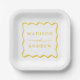 Modern Yellow Wavy Frame Wedding Paper Plate