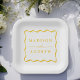 Add a stylish touch to your wedding reception, rehearsal dinner, engagement party, or wedding shower with these Modern Yellow Wavy Frame paper plates. The retro wedding paper plates display the couple's names in bold yellow lettering surrounded by a yellow wavy border contrasting with a white background. The trendy wedding paper plates were designed to coordinate with our Modern Wavy Frame wedding collection.