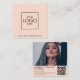 Our square business cards are equipped with a QR code, providing a convenient way for your contacts to connect with you on various social media platforms, whether you're a TikTok sensation, a YouTube influencer, or an Instagram beauty and makeup blogger. The inclusion of your logo adds a professional and branded touch to your networking efforts. The blush pink colour palette adds a chic and contemporary element, ensuring your cards stand out. These business cards are designed for those who want to leave a lasting impression and encourage connections. Whether you're a social media influencer, beauty makeup blogger, or content creator, our online business card generator simplifies the customisation process to align with your branding and marketing goals. With our Modern Your Logo QR Code Trendy Social Media Photo Square Business Card, you can effectively promote your online presence, encourage others to connect with you, and make a stylish and memorable impression, all on blush pink business cards.