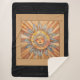 Warm tones of tan, orange, and burnt amber making up this beautiful, peaceful-looking sun add a sense of tranquillity upon this cosy, large, 60 x 80 inch sherpa blanket. With arrows facing the cardinal directions and feathery rays on the sun, this Boho inspired design is accentuated by a modern and unexpected complimenting and contrasting black brick border. Adds a Zen atmosphere and modern pops of colour to your living room, office sofa, meditation area, or bedroom. Available in small, medium, and large.