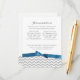 Add directions or accommodations to this modern chevron or zig zag style pattern in grey with a blue ribbon design to compliment the invitations.