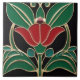 Modernist Art Nouveau Bold Black Green Red Flower Tile