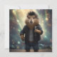 Rockstar Capybara", a dynamic capybara takes center stage, exuding rockstar charisma. Clad in distressed denim jean shorts and a matching jacket, the capybara grips a microphone with intensity, its vibrant mohawk standing tall in a bold burst of black color. The bokeh background glows with dazzling stage lights in hues of gold and purples and blues, creating a dramatic atmosphere that complements the energy of the moment. With a confident stance and a fierce gaze, this capybara rocks the crowd, blending charm and edge in a performance that screams individuality and star power.
