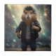 Rockstar Capybara", a dynamic capybara takes center stage, exuding rockstar charisma. Clad in distressed denim jean shorts and a matching jacket, the capybara grips a microphone with intensity, its vibrant mohawk standing tall in a bold burst of black color. The bokeh background glows with dazzling stage lights in hues of gold and purples and blues, creating a dramatic atmosphere that complements the energy of the moment. With a confident stance and a fierce gaze, this capybara rocks the crowd, blending charm and edge in a performance that screams individuality and star power.