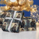 Rockstar Capybara", a dynamic capybara takes center stage, exuding rockstar charisma. Clad in distressed denim jean shorts and a matching jacket, the capybara grips a microphone with intensity, its vibrant mohawk standing tall in a bold burst of black color. The bokeh background glows with dazzling stage lights in hues of gold and purples and blues, creating a dramatic atmosphere that complements the energy of the moment. With a confident stance and a fierce gaze, this capybara rocks the crowd, blending charm and edge in a performance that screams individuality and star power.