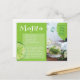 Recipe postcard for the Mojito, a traditional Cuban highball cocktail drink made with rum, mint, and lime. The card includes a photo of a bottle pouring into a glass with mint and lime, graphics of lime slice and mint leaf, and the recipe.