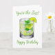 This birthday card features a watercolor portrait of a mojito with the caption "You're the Zest! Happy Birthday".