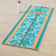 Teal and Aqua Colorway with Teal on the back. Mokuleia Beach is a popular surf spot on the North Shore of Oahu, Hawaii. Our design is reminiscent of a vintage surfboard from the early days of surfing. We combined faux koa wood with natural maple and added a pareau print of hibiscus flowers and a shaper's logo. Customise the name of the surfboard sharper to your own! The mat reverses to a sold colour.