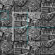 Mola inspired design of abstract bird in black and white. 21x21 inch square by Virginia Vivier, Vagabond Folk Art.