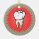 Molar freshly extracted on a red starburst ceramic tree decoration