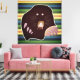 Mole drawinf and yellow, green, blue stripes. Fresh wall art decor.