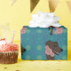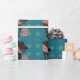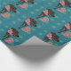 Retro cartoon style original illustration of cute happy dog wearing a garland of roses with geometric patterned background. Perfect wrapping paper for dog and animal lovers for any occasion.