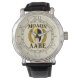 A bold golden Spartan warrior helmet Molon Labe laurels mask expression on a beige graphic accent print decor for a fine custom fashion watch. Come and get them!