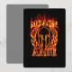 A Spartan Warrior Helmet Molon Labe mask expression in flames on a black decor. Come and get them!