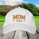 Embroidered Hats: Classic golden / white fashion baseball cap with text "MOM" and custom year 20XX for fresh moms, mothers day, grandma birthday / family hats
