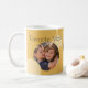 Change the text and add three photo to this mug in shades of buttercup yellow with large polka dots. For Mom or Dad!