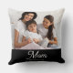 Mom Established Black White Script Photo Cushion