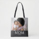 Black White Mom Established Classic White Caps Photo Design. Replace the photo with your own and change the year to the year you first became a mom. Classic white serif font can be personalized by changing MOM to MUM, MAMA or even MIMI. This Mom tote would make a great gift for Mother's Day—especially for a new mom—or birthday, or "just because". This is a timeless, stylish design that speaks volumes. Please message me for extra branding for souvenir gifts for your mom group or church fellowship. Also in white.