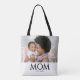 Black White Mom Established Classic Black Caps Photo Design. Replace the photo with your own and change the year to the year you first became a mom. Classic black serif font can be personalized by changing MOM to MUM, MAMA or even MIMI. This Mom tote would make a great gift for Mother's Day—especially for a new mom—or birthday, or "just because". This is a timeless, stylish design that speaks volumes. Please message me for extra branding for souvenir gifts for your mom group or church fellowship. Also in black.