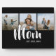 Mom Established Elegant Script Black 3 Photo Plaque