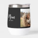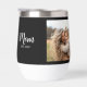 White Script Mom Established Black Photo Design wine tumbler - Celebrate moms and mom’s-to-be on Mother’s day or just because, with this simple and elegant white script typography wine tumbler design, with a personalizable photo, the word “Mom” in playful script text across each side for a cheerful vibe, and space for you to personalize with an “Est. year” underneath for when she became a mom. You can also change "mom" for mommy, mum, mam, mama or any name you prefer to use.