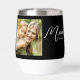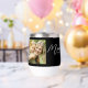 Black White Mom Established Script Black Photo Design. Replace the photo with your own of your kids and change the years to the years you became a mom. Use the edit tool if you want a second photo added instead of the one photo two times.