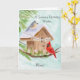 This hand-painted watercolor features a charming birdhouse adorned with a Happy Birthday banner, as a tufted titmouse and a cardinal stop by on a crisp January winter day. Soft seasonal details and gentle colors create a warm, thoughtful scene, making it a lovely birthday piece for mom who celebrates in January.