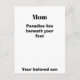 A heartfelt postcard featuring the meaningful message “Mom, paradise lies beneath your feet.” This simple and elegant design is a beautiful way to express love, gratitude, and deep respect for a mother.