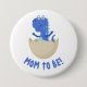 Cute cartoon of a blue dinosaur hatching from an egg with text that reads: "Mom to be!".